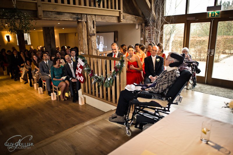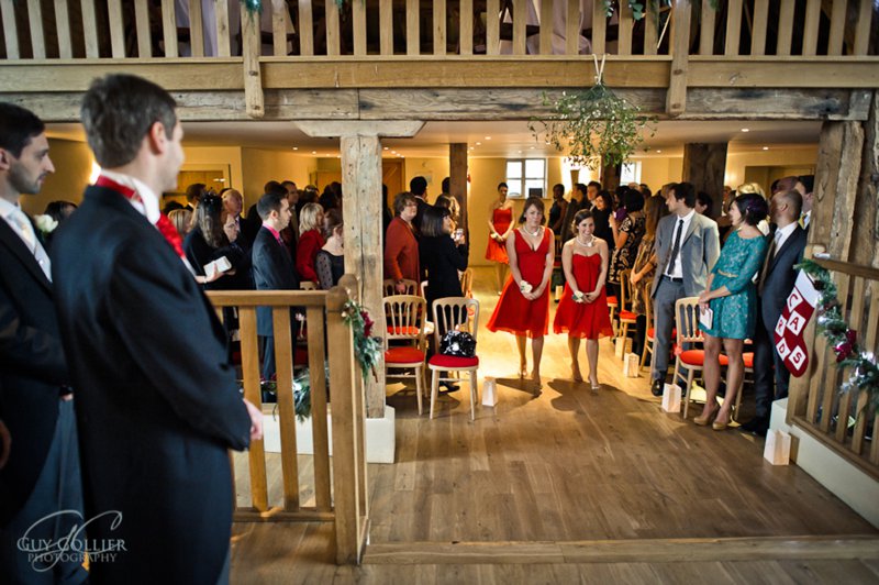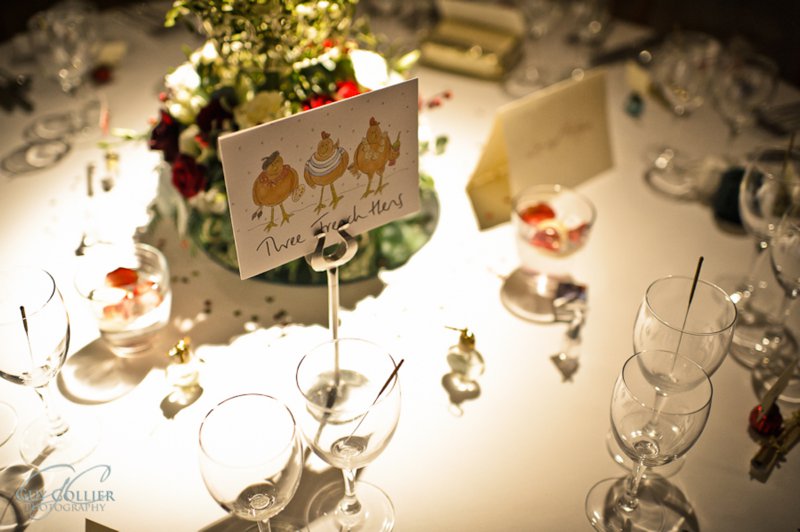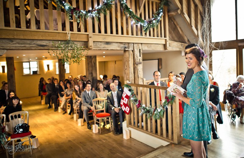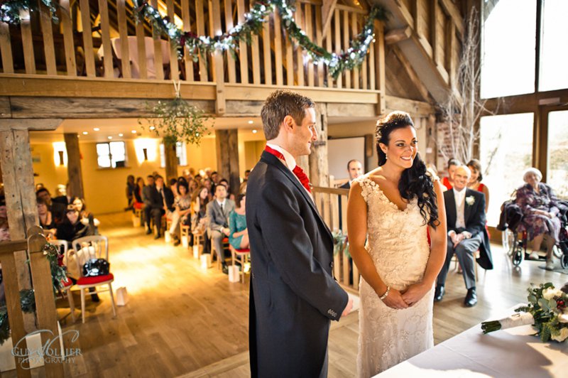 From the Christmas cards used as table names to the festive stockings strung up to receive wedding cards, Lee and Victoria seized the opportunity to make the most of the festive theme. With their bridesmaids all lined up in jubilant red dresses and floral displays bursting with berries and winter blooms, every detail sang of the Christmas season.