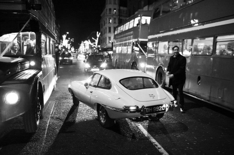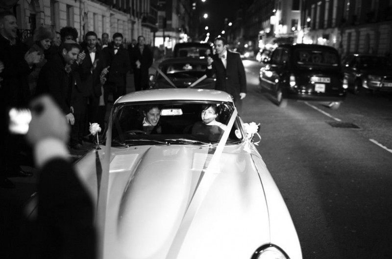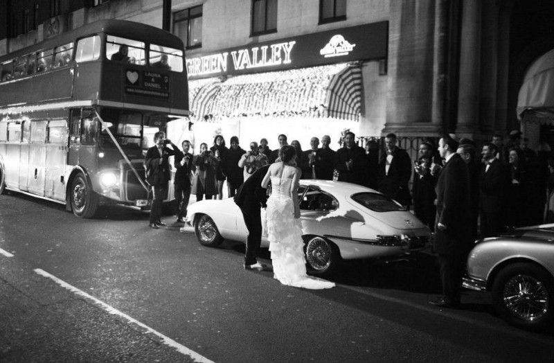 We love the idea of making a grand exit from your wedding reception, and what better way to do that than by pulling out into oncoming traffic on a busy London night to whisk the love of your life away in the world’s most handsome car?