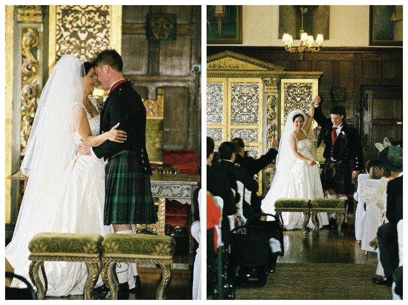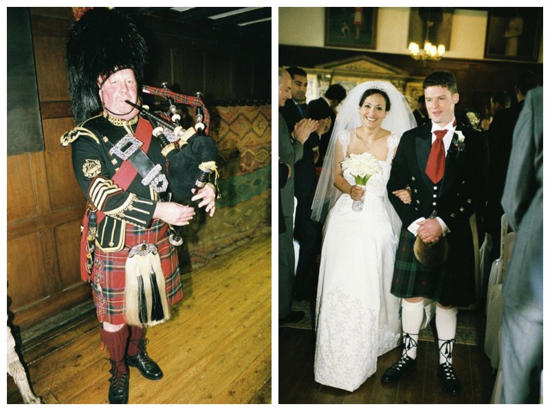 130 of Callum and Emma-Louise’s friends and family witnessed her grand entrance, preceded by a traditional piper. Next to Callum’s traditional Celtic dress, the intricacies of the delicate beading on Emma’s dress seemed to glitter beneath the warm light of The Great Drawing Room.