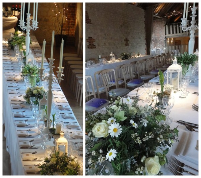 Somehow, Susanna managed to transform the vast space of the barn into something incredibly soft, inviting and beautiful with her magical art of floristry . A combination of white roses, sprays of gentle gypsophila and the occasional potted plant dotted along our long banquet tables not only looked gorgeous but also provoked a lot of conversation amongst our betrothed couples.